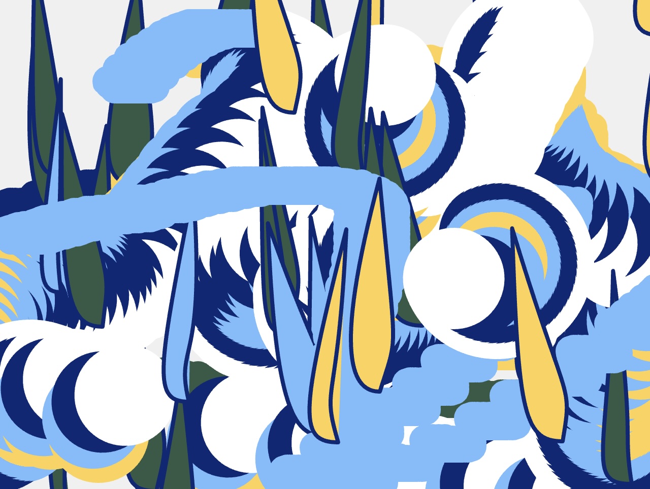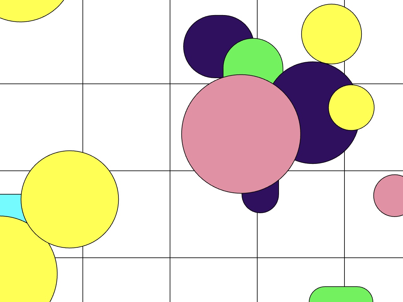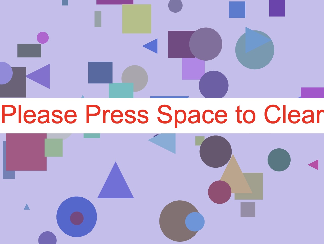 For the midterm project, students worked in pairs or small groups to create a drawing application in the style of a modern or contemporary artist of their choosing. The projects were required to include at least 3 different styles available for someone to use to draw to the screen; an ability to progressively erase what has been done; a randomly-generated element; an animated element; and the use of a predetermined color palette. The drawings generated were supposed to speak to or resemble the work of the reference artist, but did not need to replicate any specific work exactly.