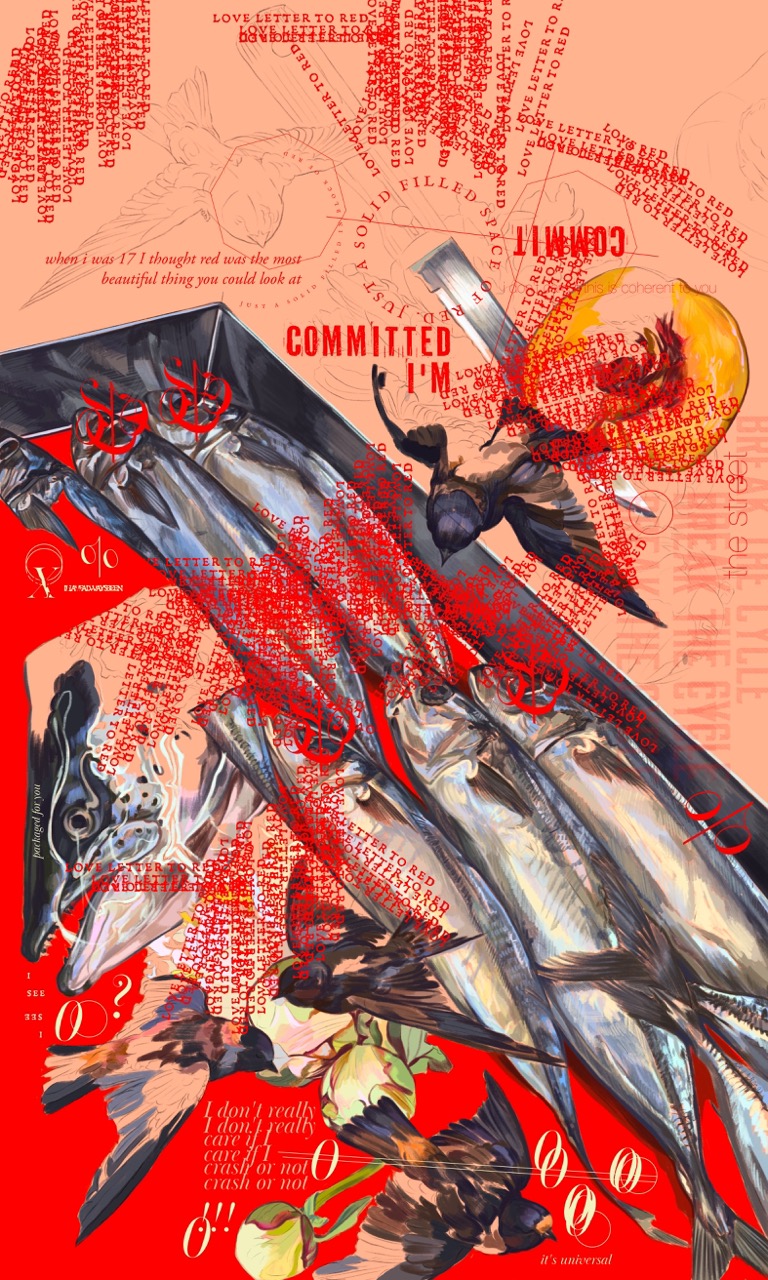For a while I couldn’t stop painting any empty space in my pieces with red. Painting space with red became a sort of compensation for any uncomfortable space or silence. Rewriting red into something removed from cultural implications and canon of socialist realist painting was progress in my mind.